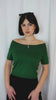 The Lavinia Top is a 50s-inspired rockabilly knit with an off-shoulder neckline and flattering half sleeves. It sits neatly at the waist, making it perfect to pair with high-waisted jeans, swing skirts, trousers or shorts.