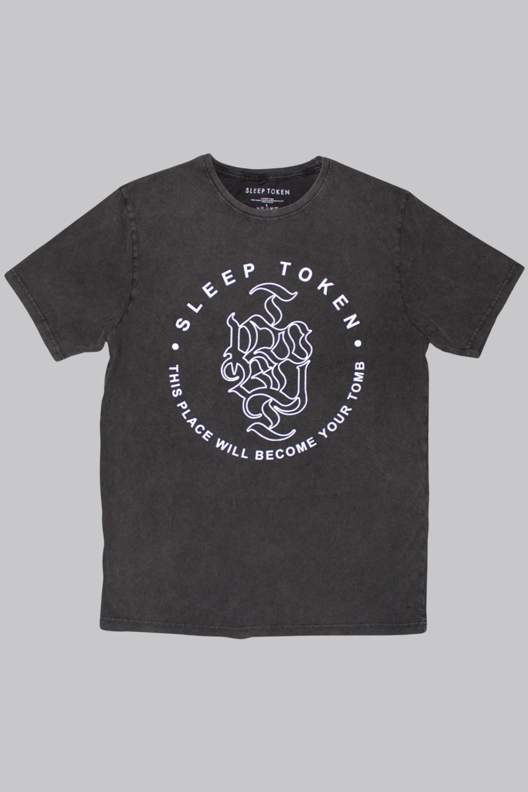 If you're a fan of Sleep Token and looking for a very nice band shirt, this is the one. This shirt is made from a thick, high quality material and finished in a grey stonewash. Still really cool, but just a little different than you usual black band shirt.